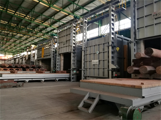 臺車爐為長方箱形結(jié)構(gòu),承重平臺為可移動小車,工件堆放在工作臺上,進(jìn)出電動傳動,爐門上下開關(guān),電動控制;爐襯采用全纖維硅酸鋁甩絲毯制成模塊筑成爐體,爐底采用輕質(zhì)保溫磚和重質(zhì)耐火磚砌筑,加熱元件采用電阻絲和電阻帶加熱,爐體外殼采用鋼板和型鋼制作,爐門、臺車采用機械傳動;具體配置按客戶和爐溫要求設(shè)計配備。