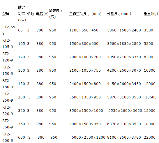 常規(guī)爐規(guī)格尺寸:(盡供參考,主要工作尺寸有用戶自定)