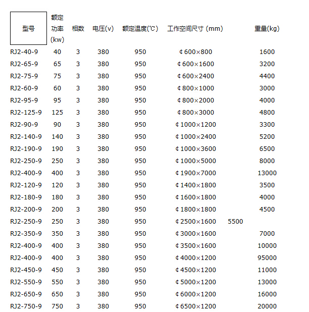 大型井式退火爐尺寸規(guī)格:(盡供參考,具體有用戶提供尺寸)