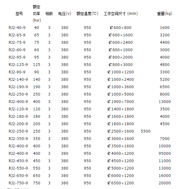 大型井式退火爐尺寸規(guī)格:(盡供參考,具體有用戶提供尺寸)